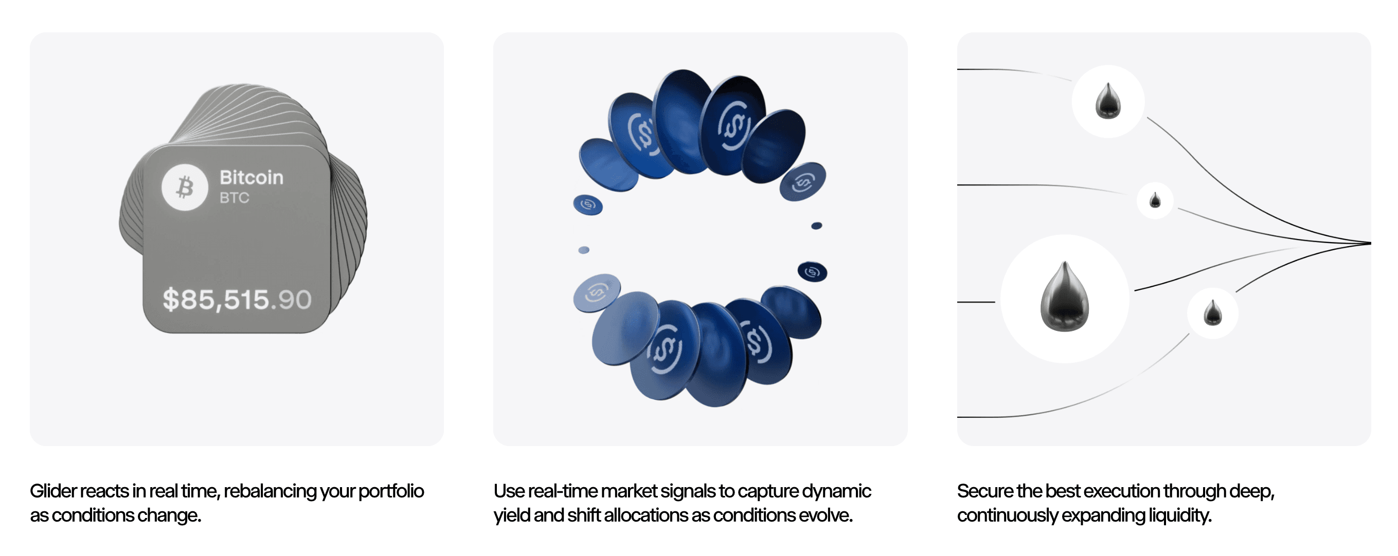 Glider simplifies portfolio management by combining automation, market awareness, and secure non-custodial infrastructure. Investors define their intent once, and the system carries out the strategy without requiring further intervention.