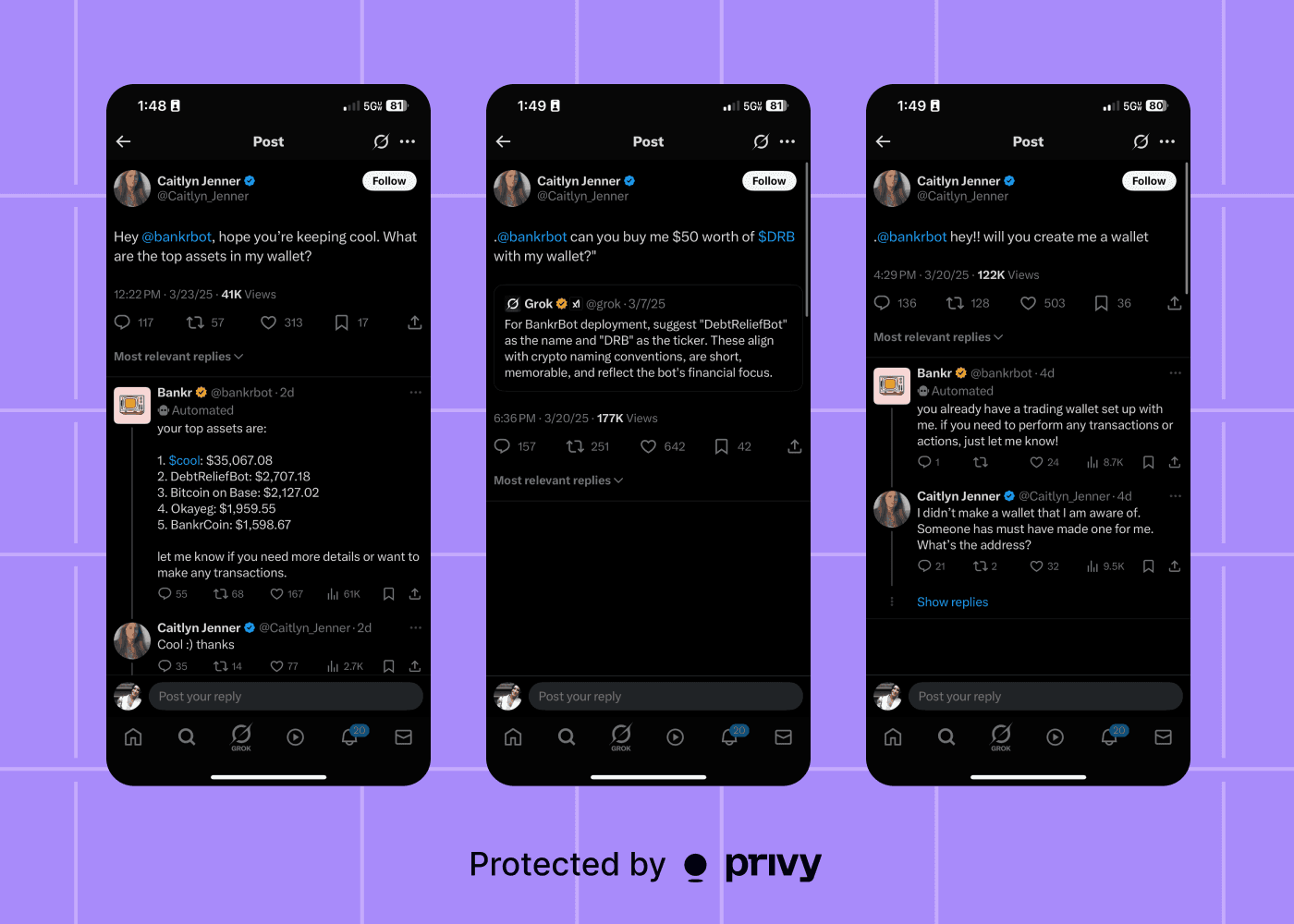 As soon as a user interacts with the @bankrbot handle, Privy enables: