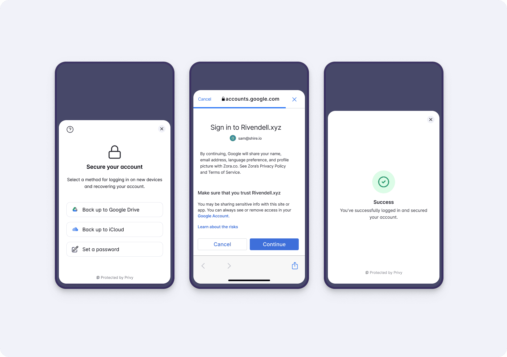 This feature offers users more control by allowing them to back up their secret to the cloud. While automatic recovery remains the simplest experience Privy offers, this marks a new milestone of our ongoing effort to improve the UX of self-custody.