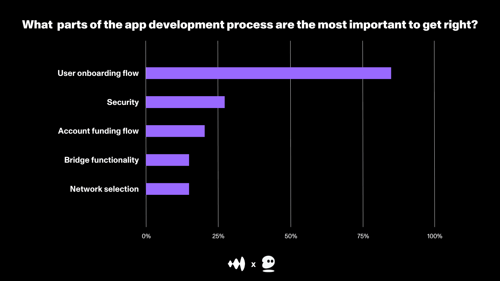 There’s a reason why >75% of respondents view user onboarding as the most important thing to get right when building a consumer app. Onboarding complexity has historically been a massive barrier to adoption in crypto, and when potential users drop off at the onboarding flow, they likely won’t ever make it back.