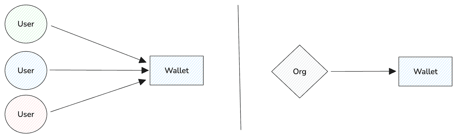 For many teams, that journey starts with the basics: a single user, a single wallet. This is the standard in most consumer crypto applications—like marketplaces and games—and it’s a major unlock: no seed phrase, no extension, just a seamless, embedded experience. It’s fast to integrate, easy to reason about, and intuitive for users.