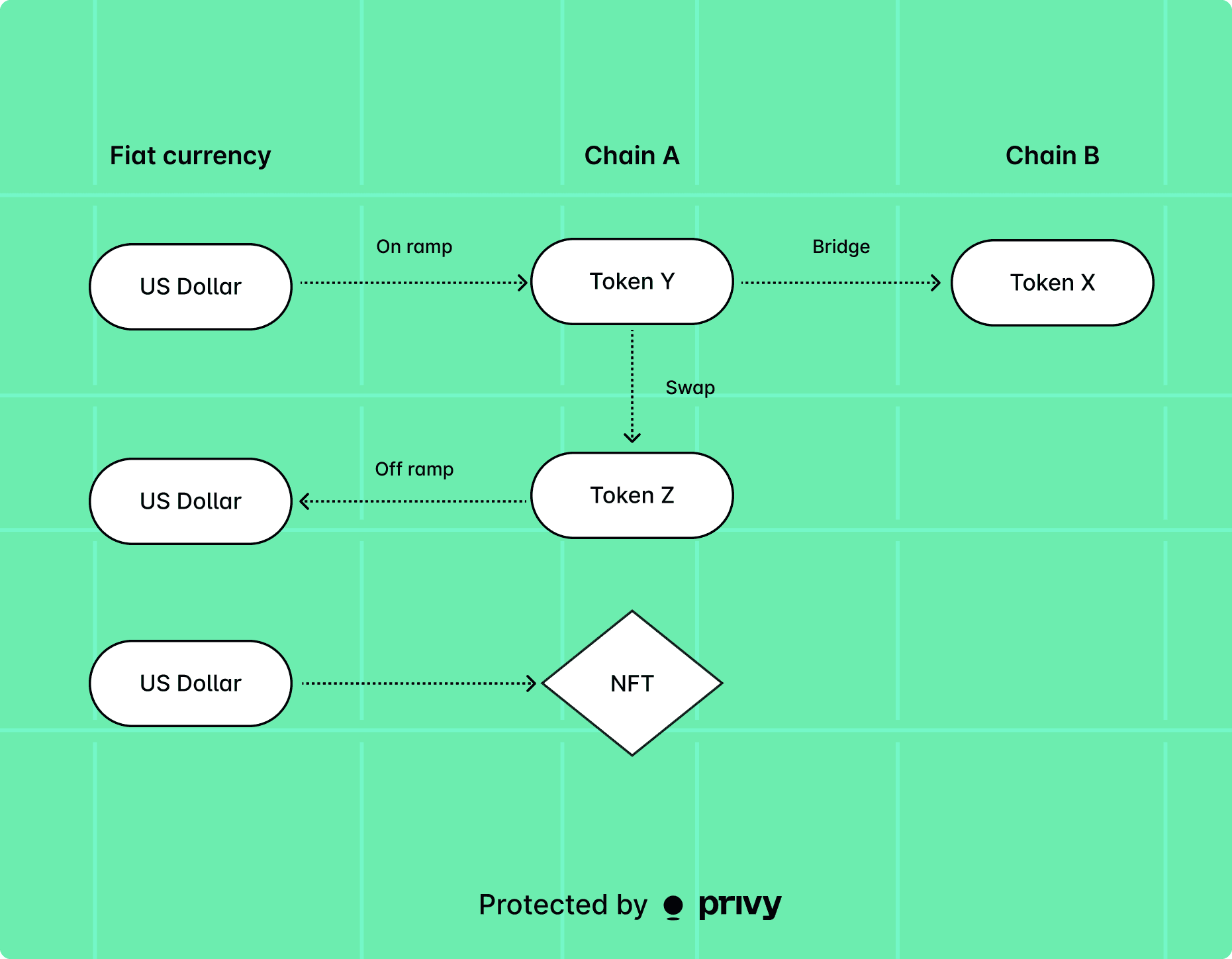 In this post, we’ve covered a few different ways money moves onchain. At Privy, we are constantly amazed at how builders come up with new solutions to very complex technical problems that enable everyone to reap the benefits of interoperability and digital ownership. Though each of these steps must be made into a straightforward product experience, the underlying implementation is loaded with complexity.