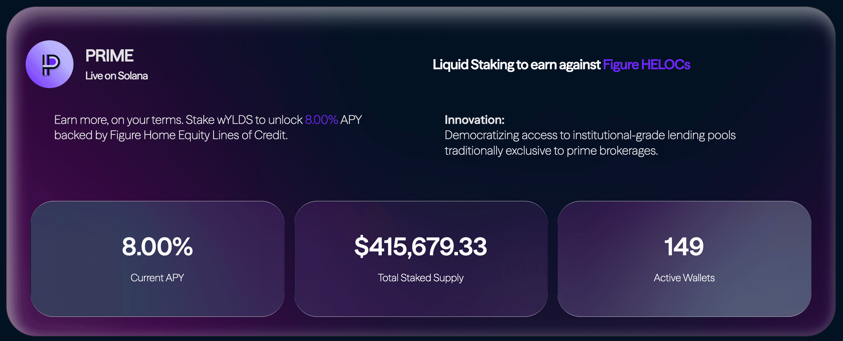 Figure has launched the RWA Consortium, a coalition bringing institutional-grade yield from real lending activity to Solana. At its center is PRIME, a new liquid staking token built on Hastra, a liquidity protocol that connects Figure’s onchain loan markets with decentralized finance. PRIME gives everyday users access to transparent, cash-flow-backed yield generated by Figure’s $1B+ in monthly loan originations.