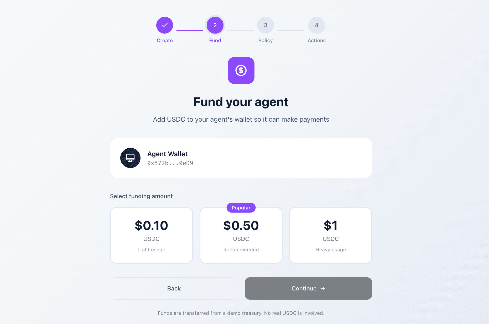 Fund it with USDC