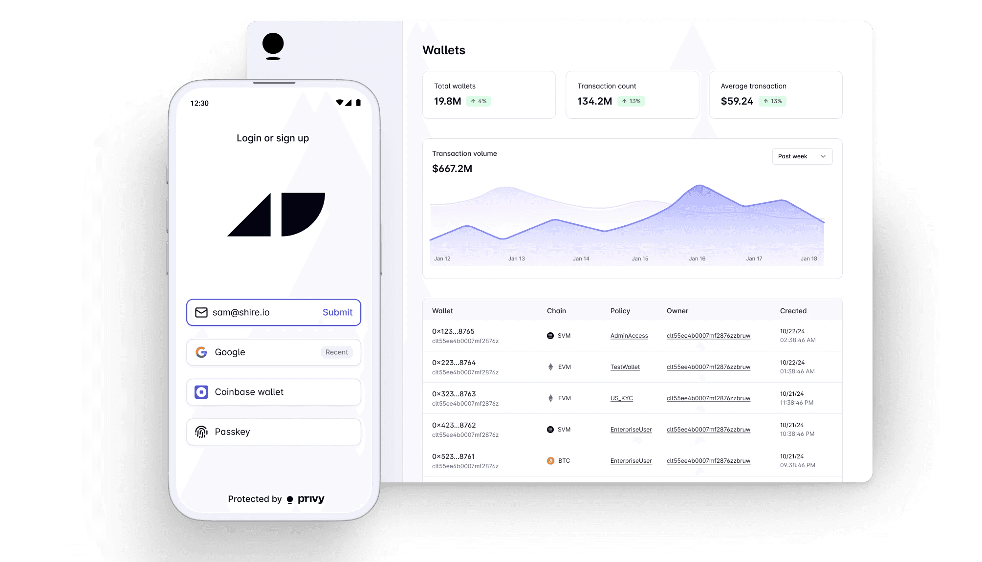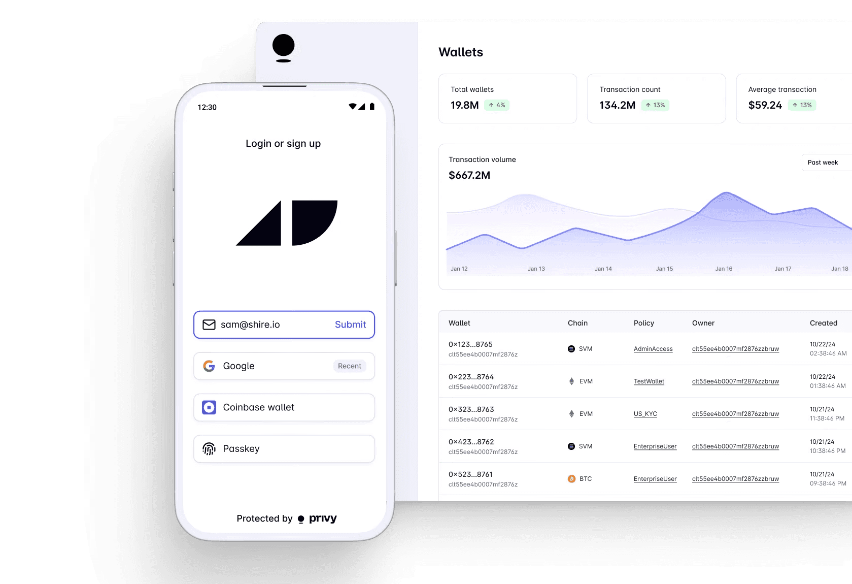 Privy powers hardware-secured, SOC 2‑compliant wallets for any user—across EVM, Solana, Bitcoin, and more. Built on TEEs and distributed key sharding, with passkey and hardware token support for iron‑clad wallets.