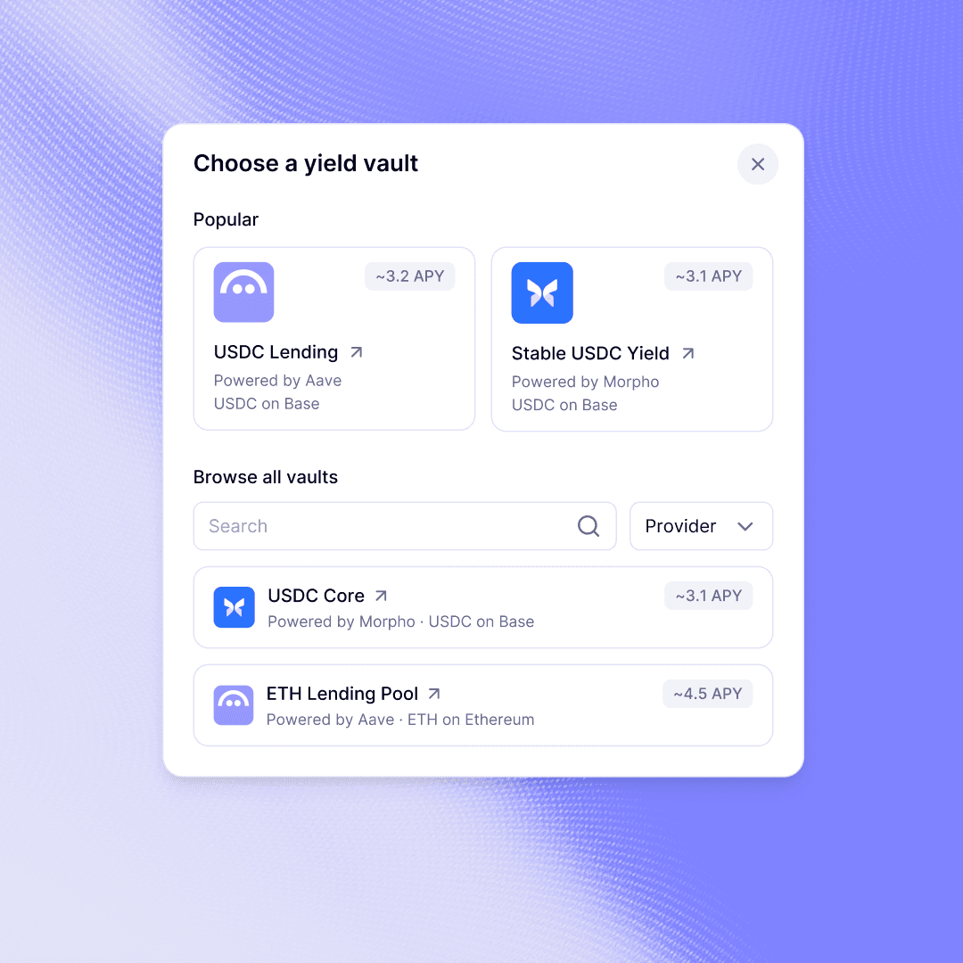 Route stablecoin balances into yield-bearing strategies and liquidity markets while maintaining treasury governance and control.